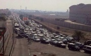 بالصور: مسافرون يترجلون من السيارت بحقائبهم ويفضلون المشي للحاق بمواعيد رحلاتهم