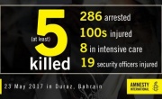 منظمة العفو الدولية تروي قصة الدراز اليوم: نقل مصاب بالشوزن في بطنه إلى المستشفى و4 إصابات خطيرة أخرى ومئات الجرحى