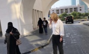 ليفني تلتقط صورة لها أمام باب البحرين وتقول إنها شاركت في مؤتمر عن الشرق الأوسط قبل انعقاد الورشة الاقتصادية